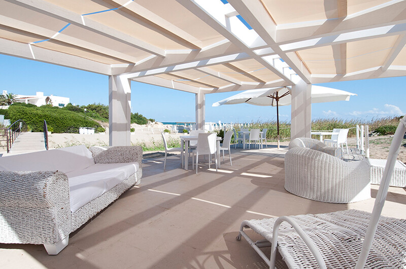 Eingebettet in eine üppige Gartenanlage im privaten Rosa Marina Quartier • 400 m zum flachabfallenden Sandstrand (kostenloses Züglein, das die Gäste hin und her fährt) • 10 km bis Ostuni