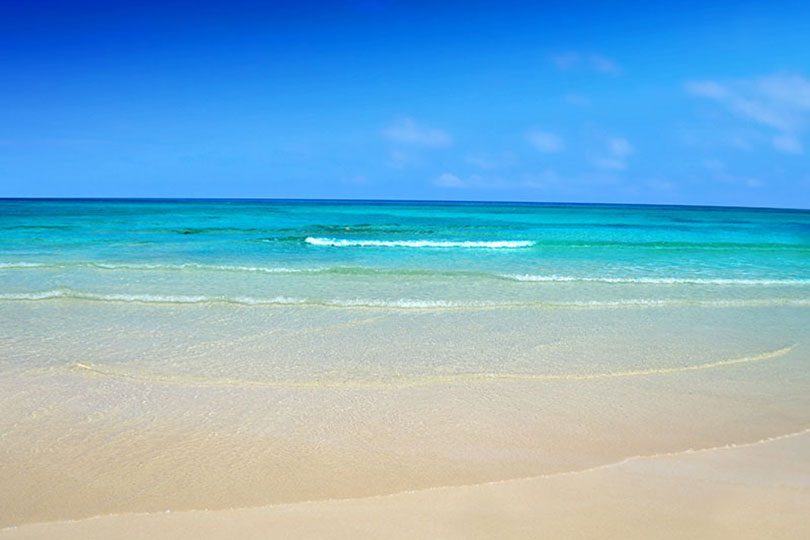 und den feinsandigen Strand.